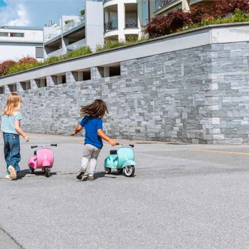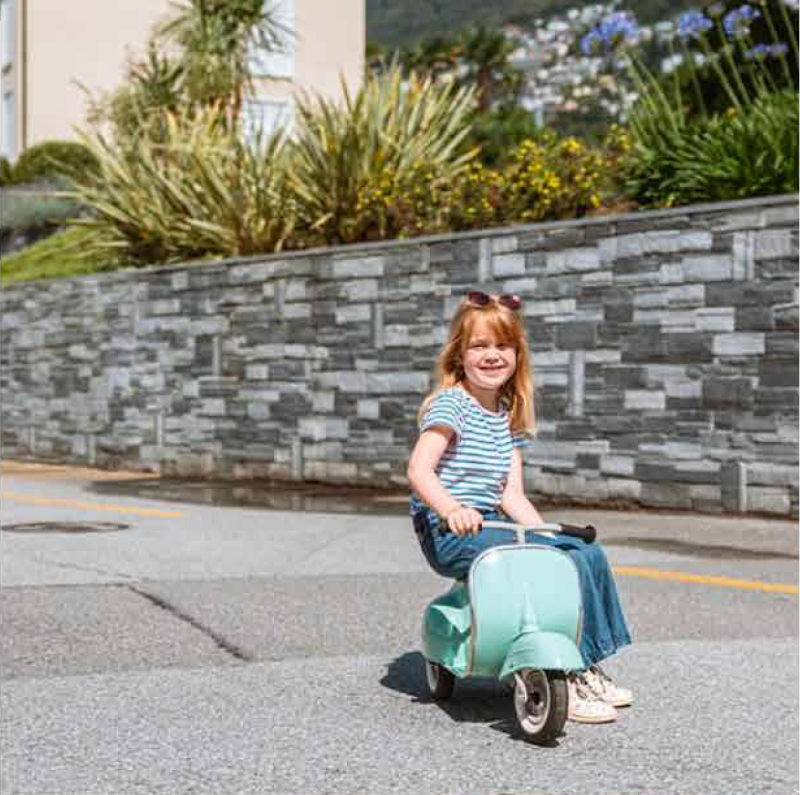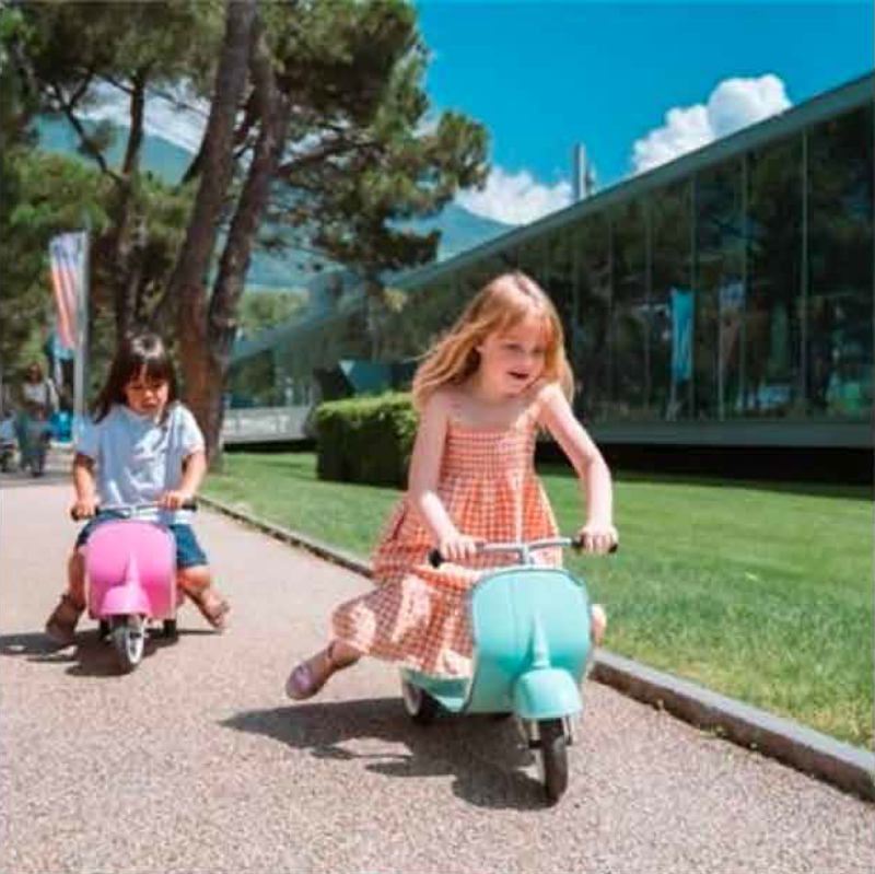 Wir haben das klassische italienische Scooter-Design mit unserer Handwerkskunst kombiniert, um ein kultiges Kinderfahrzeug zu schaffen.