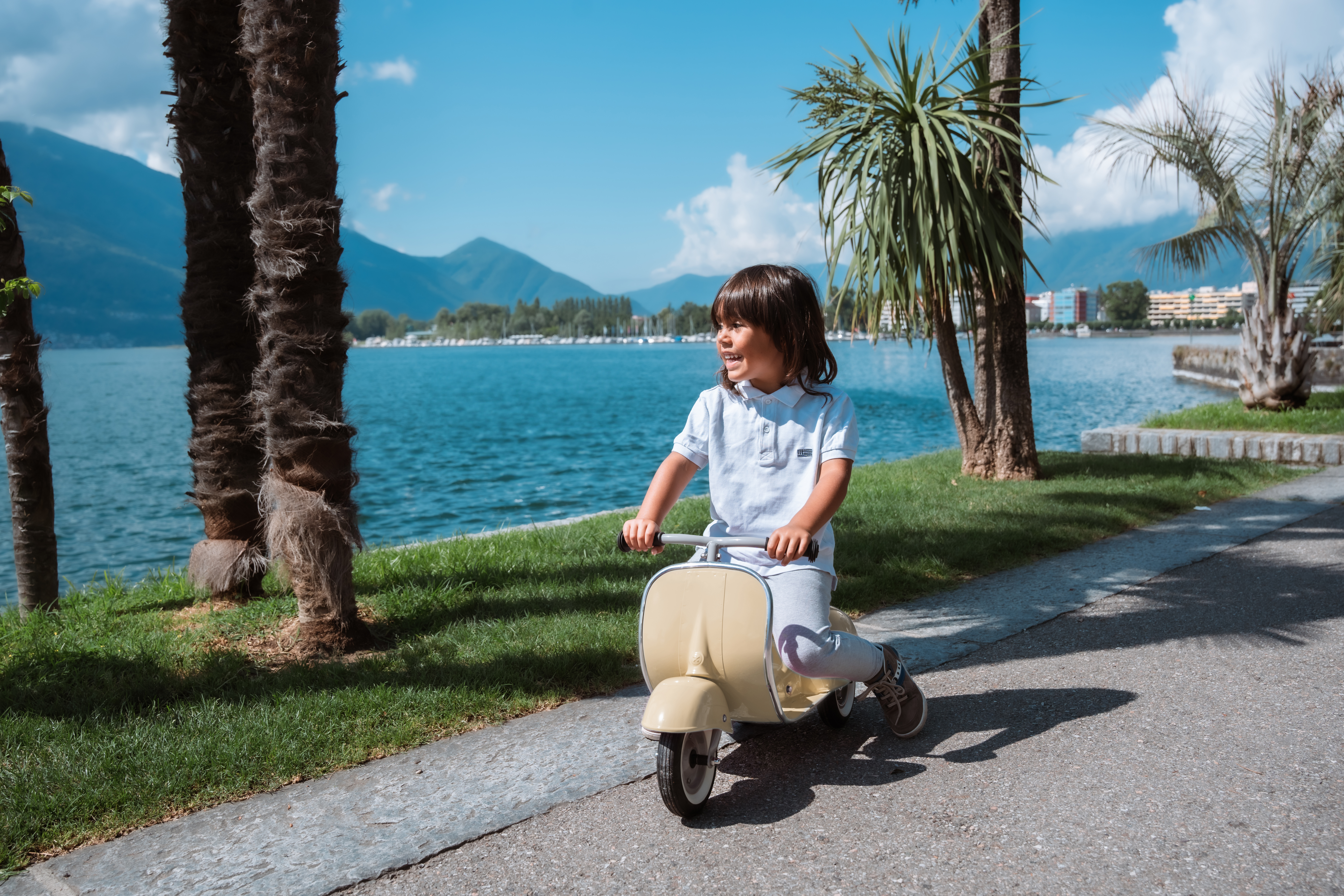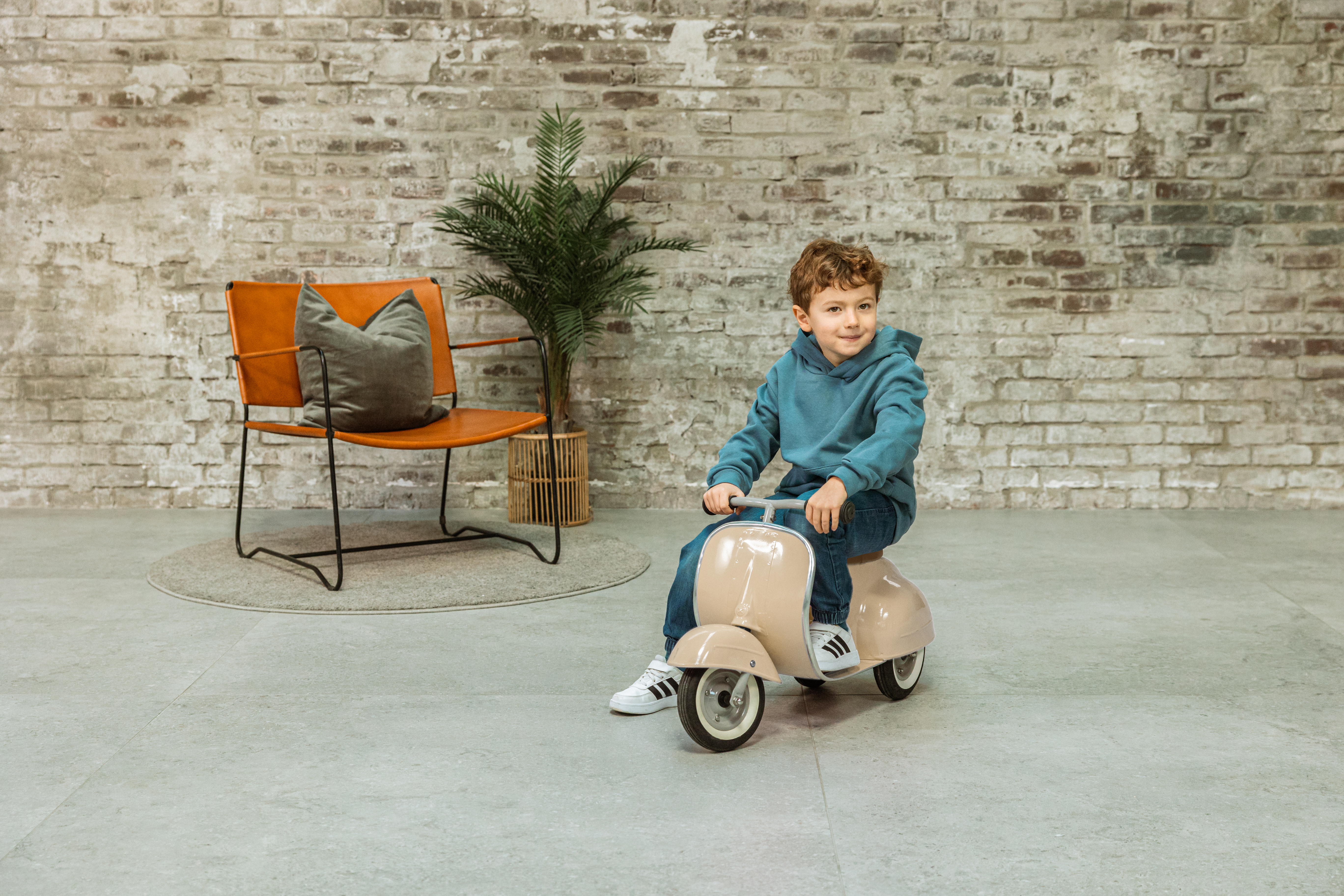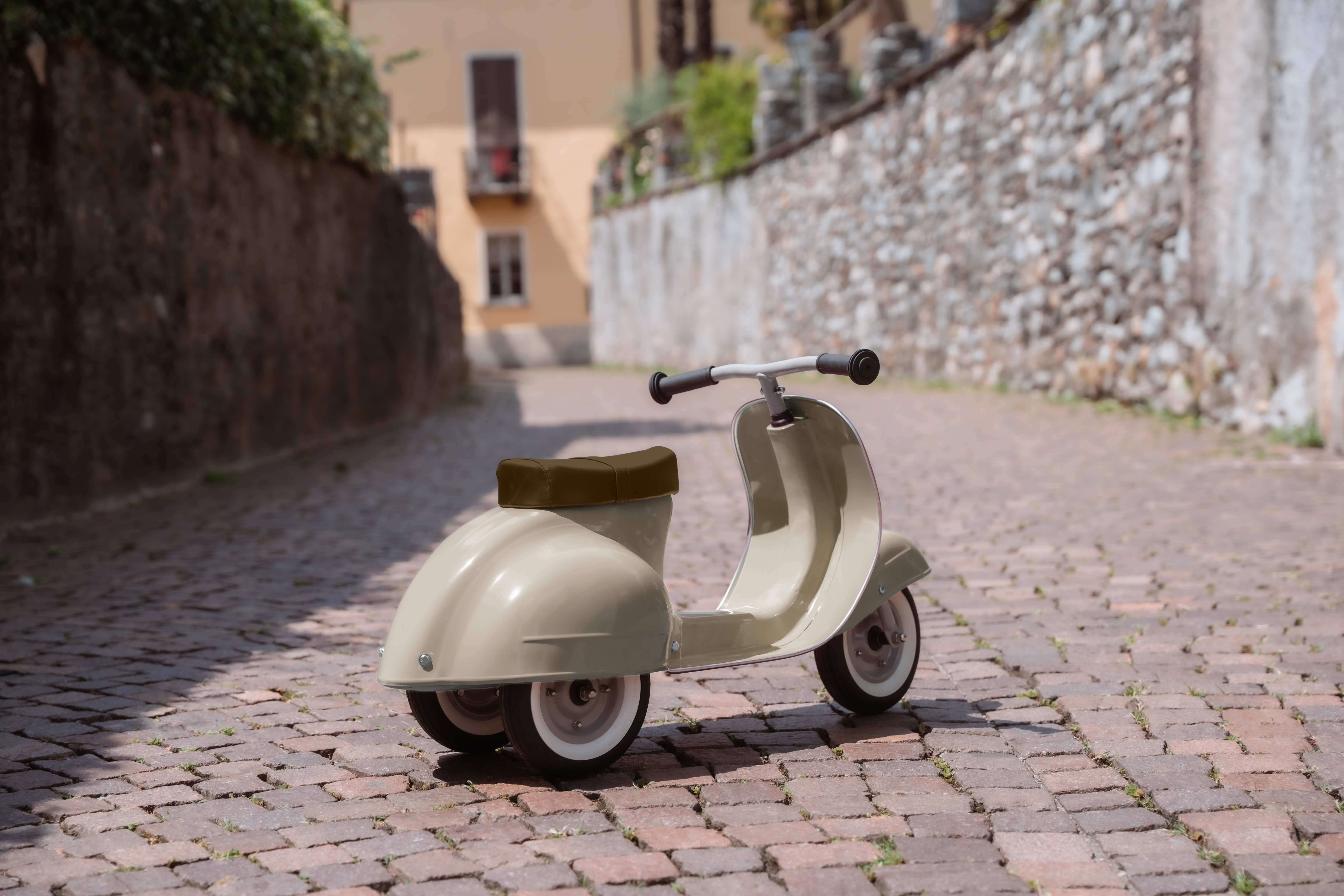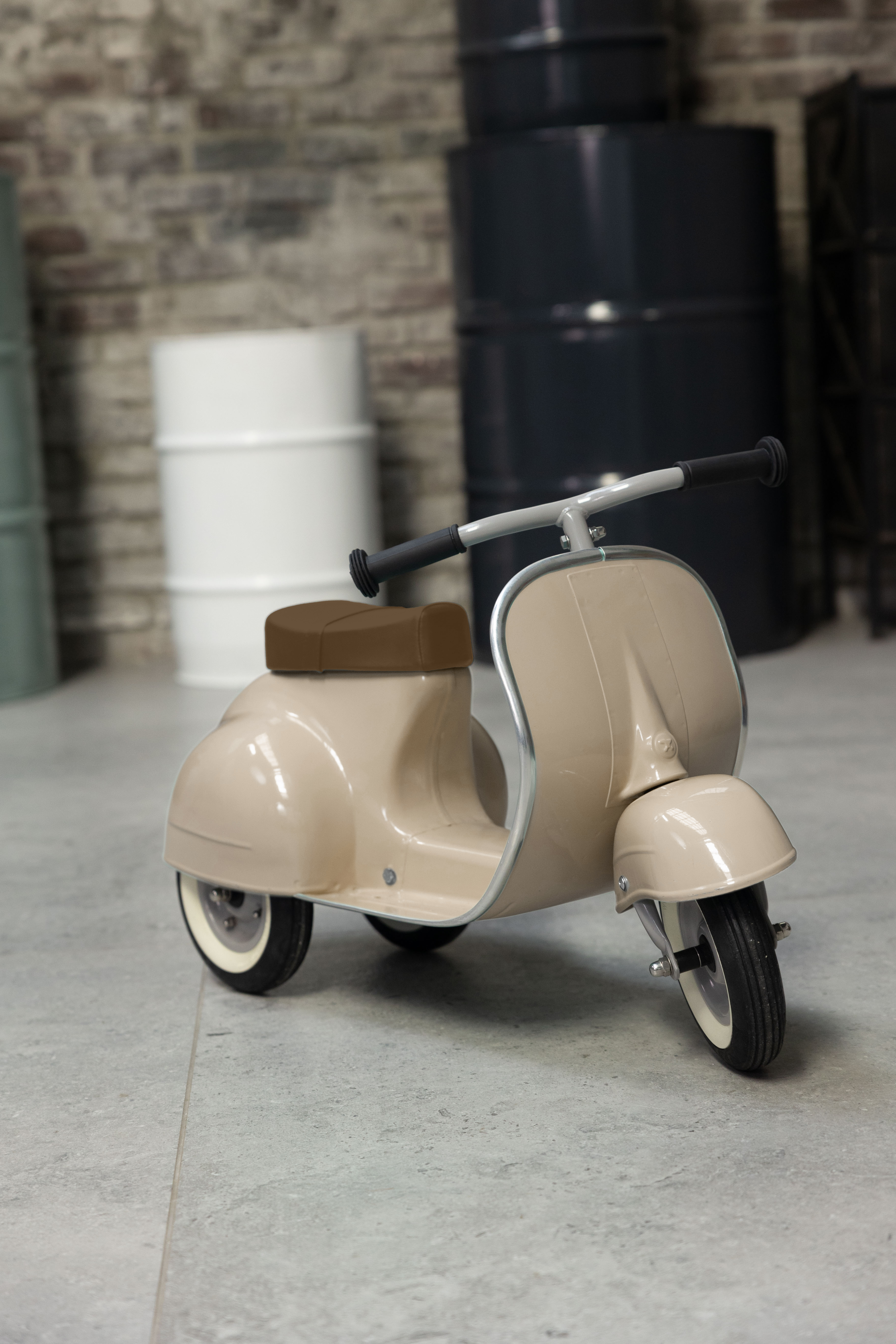 3-rädriges, Rutschfahrzeug aus Metall. In feinster Handarbeit geformt im Design eines klassischen italienischen Rollers.