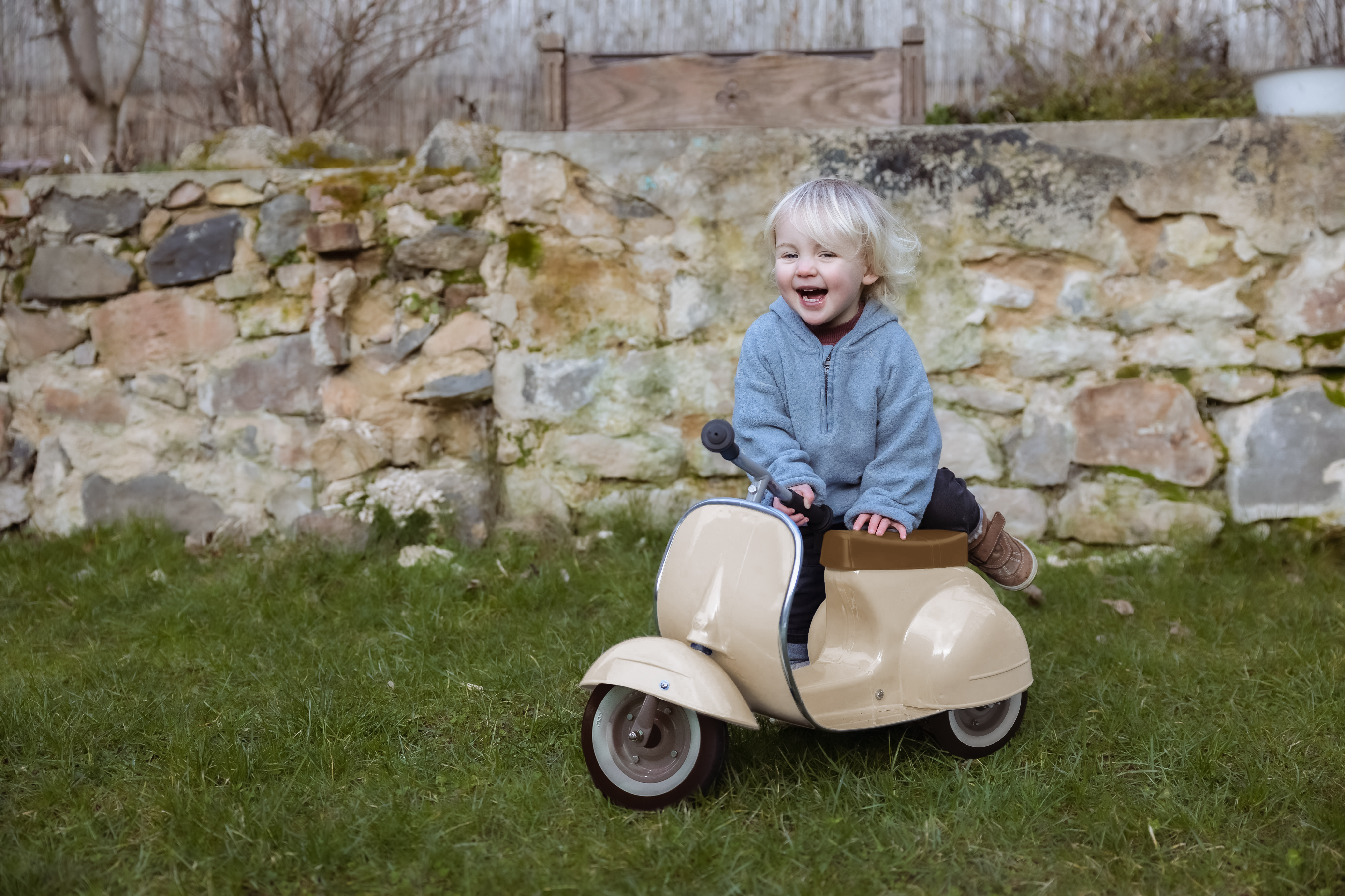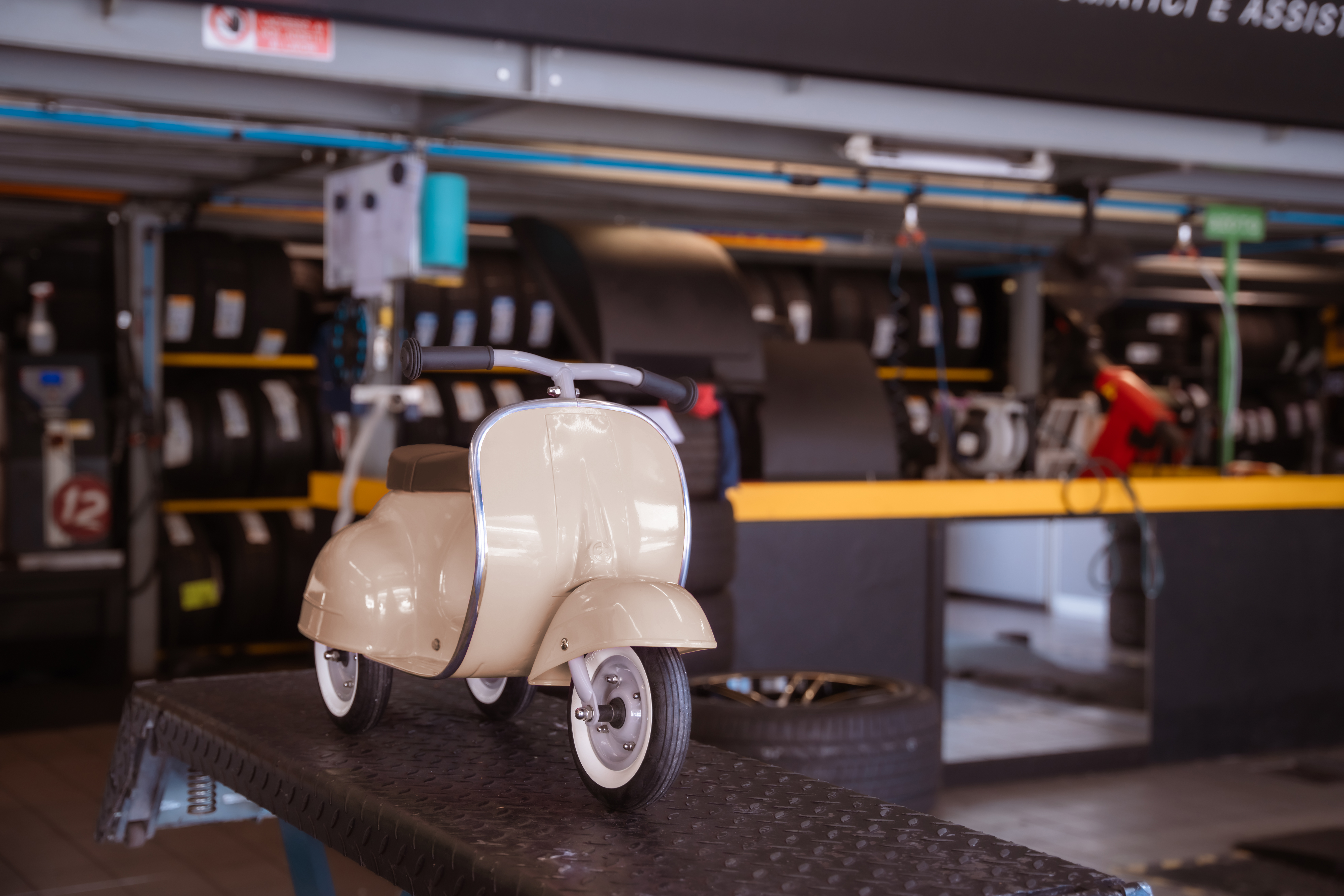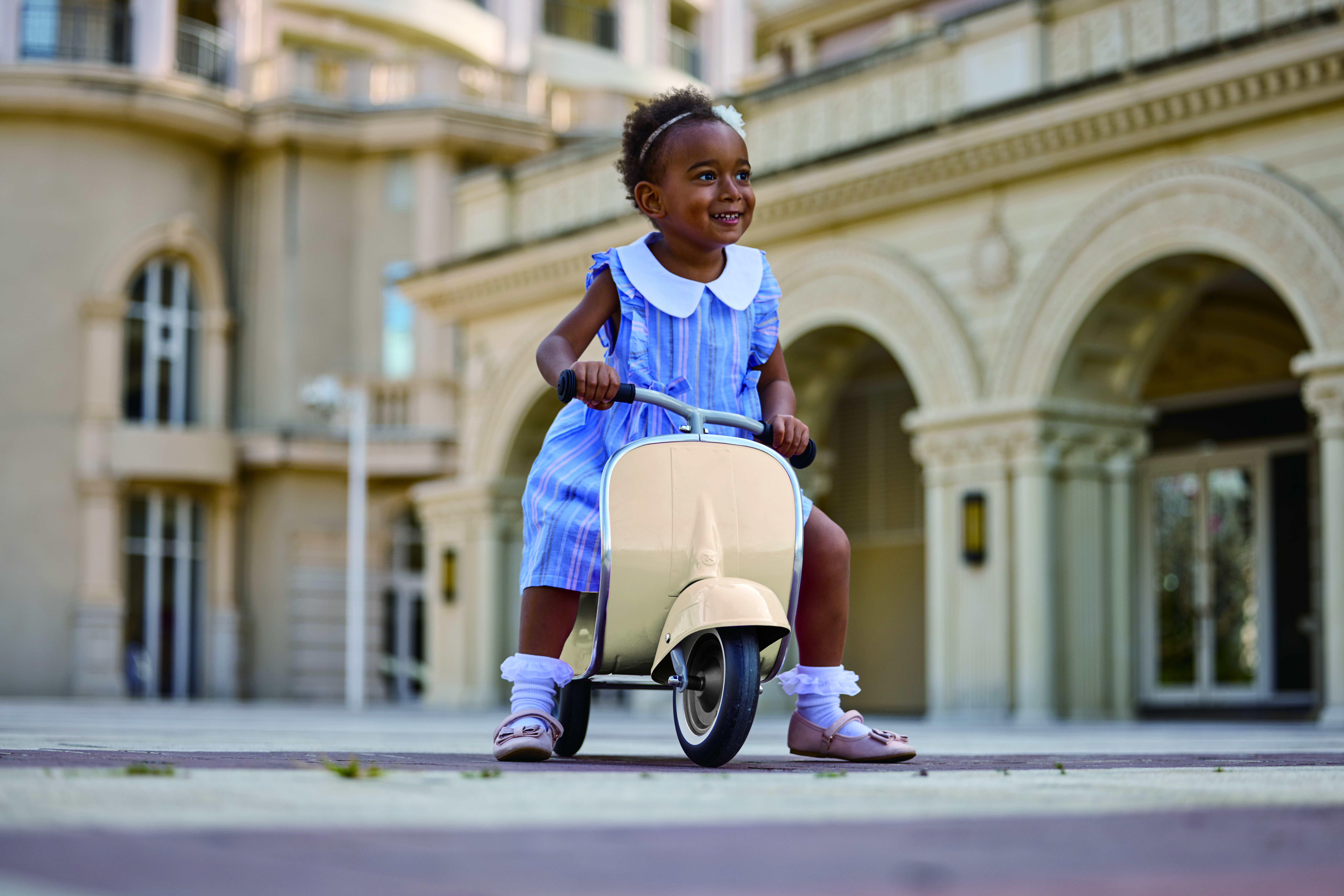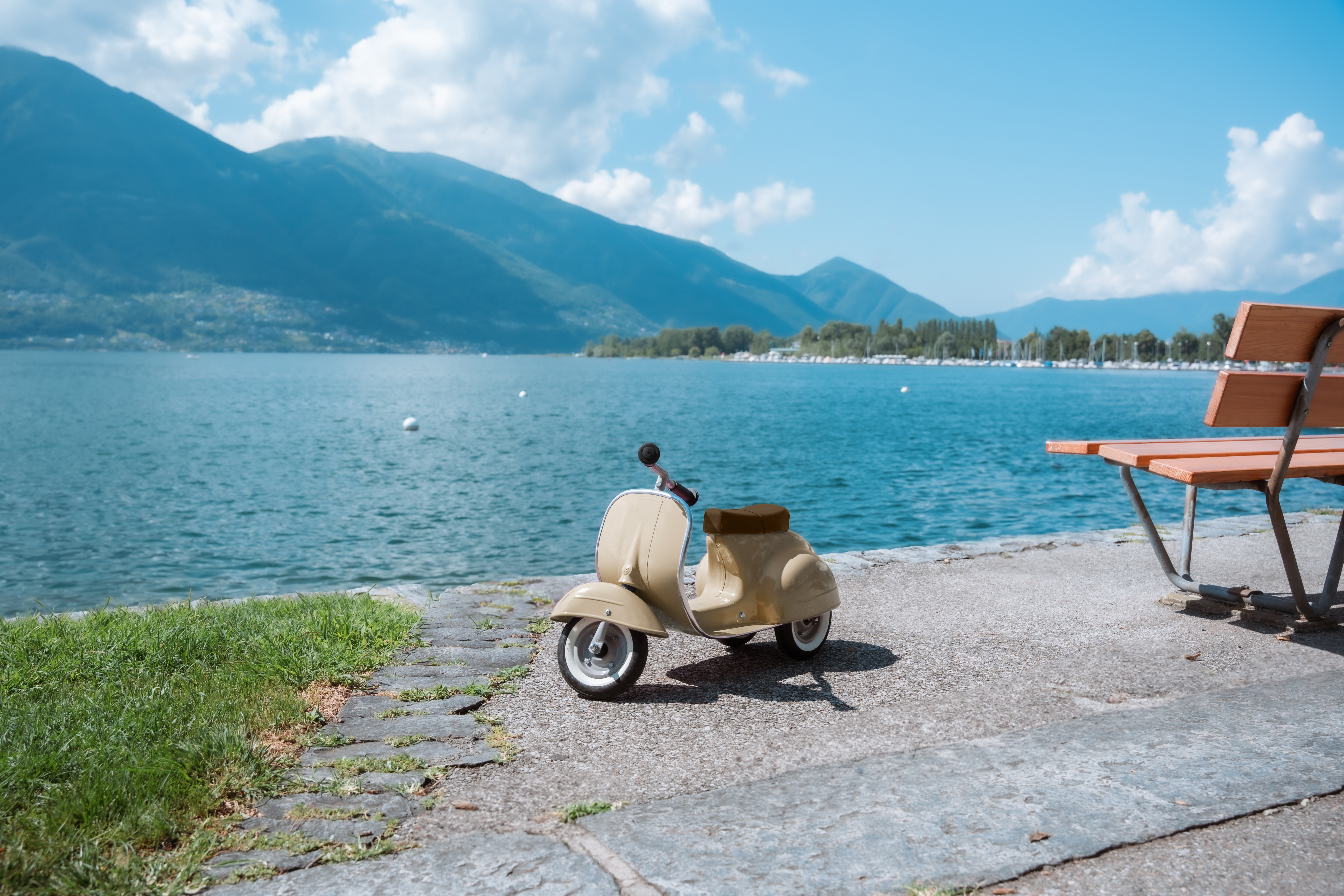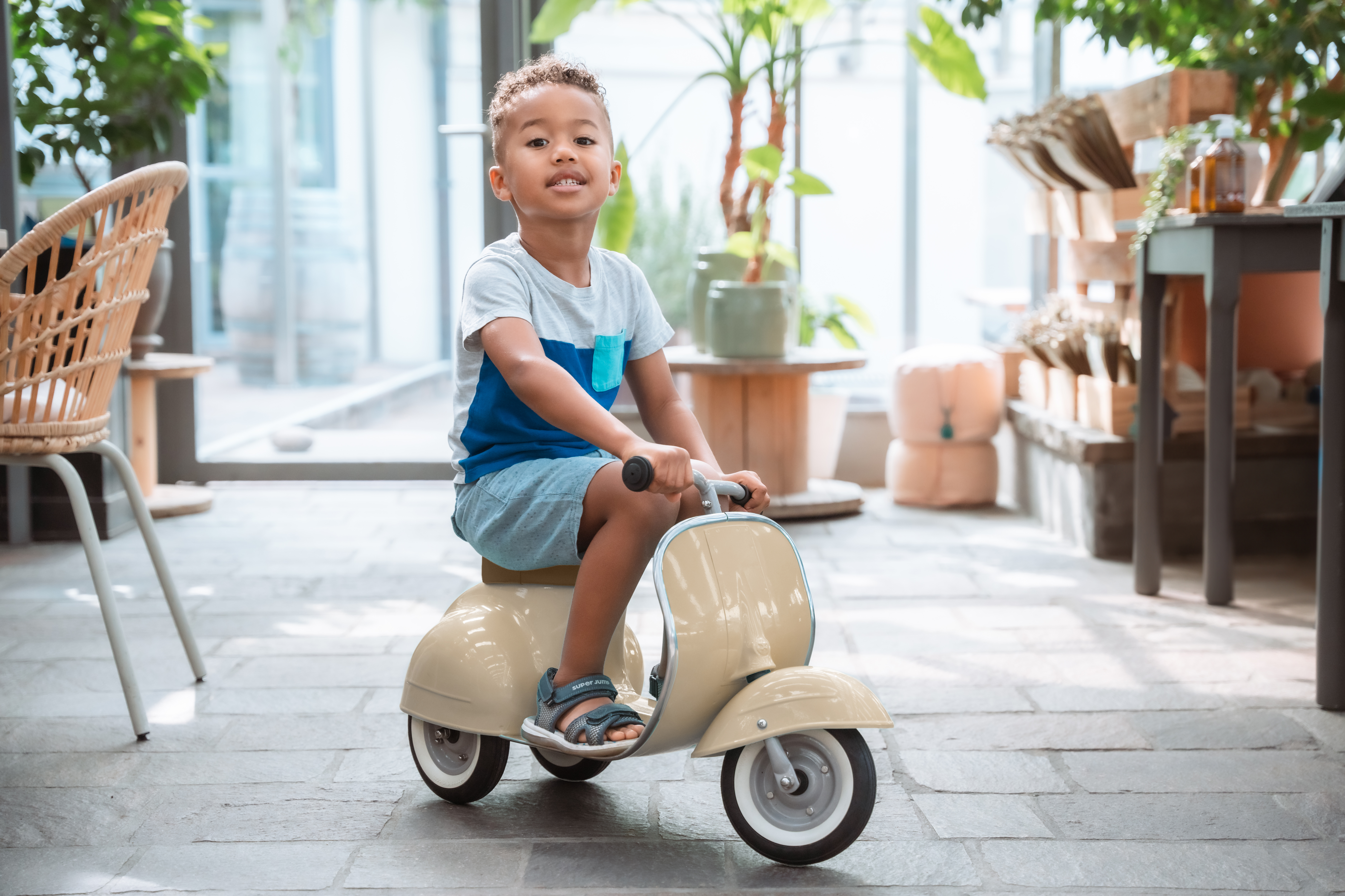 3-rädriges, Rutschfahrzeug aus Metall. In feinster Handarbeit geformt im Design eines klassischen italienischen Rollers.