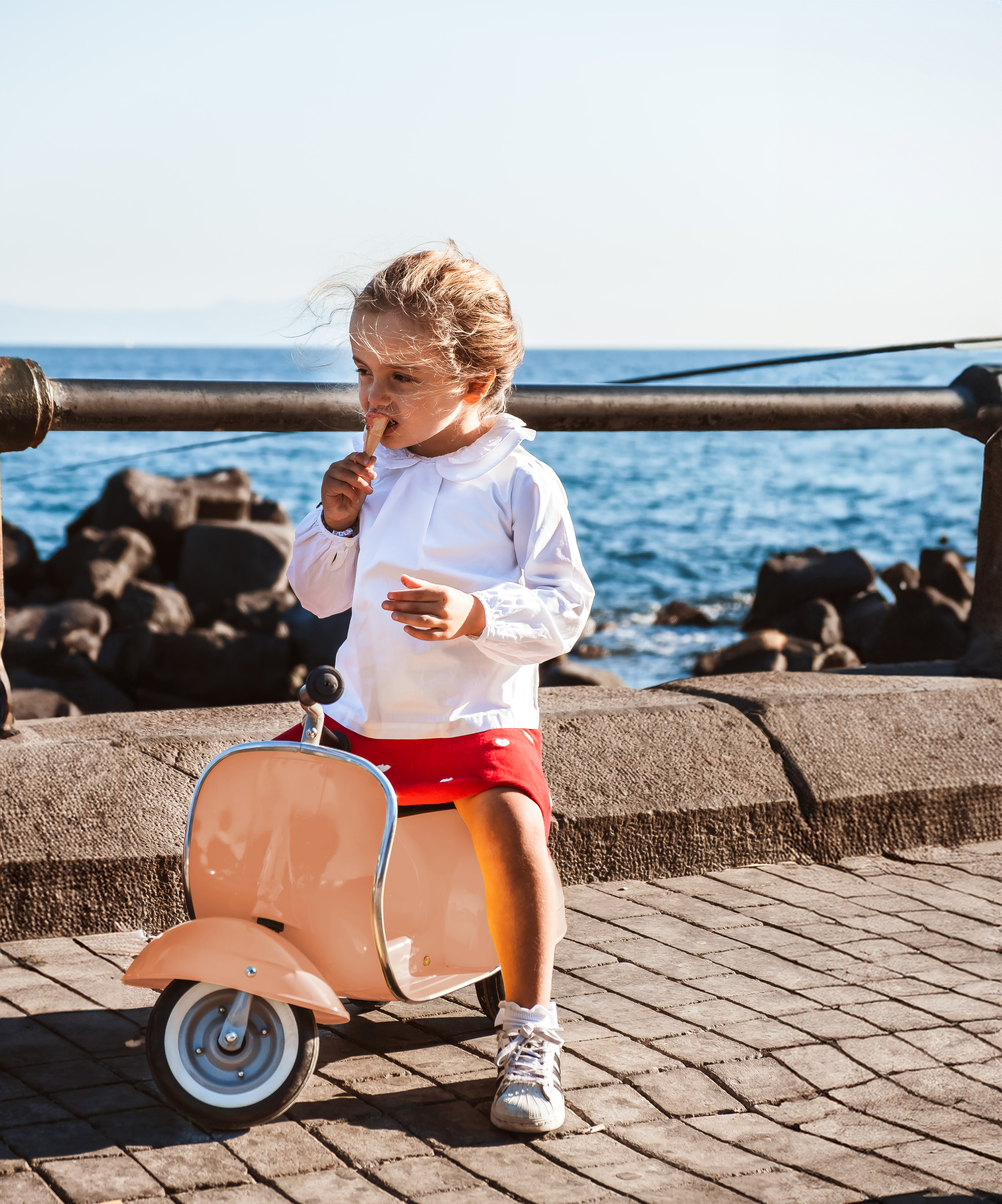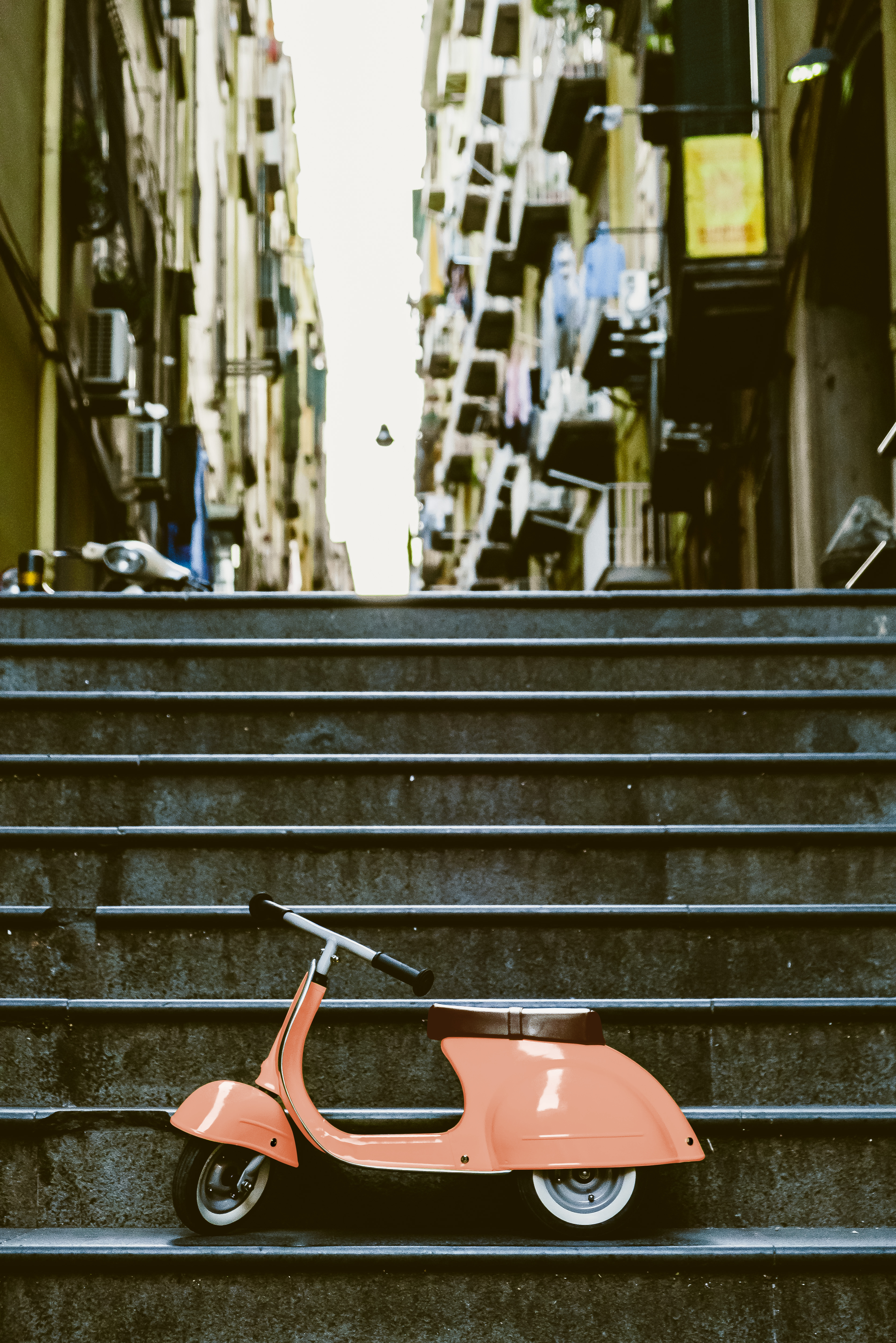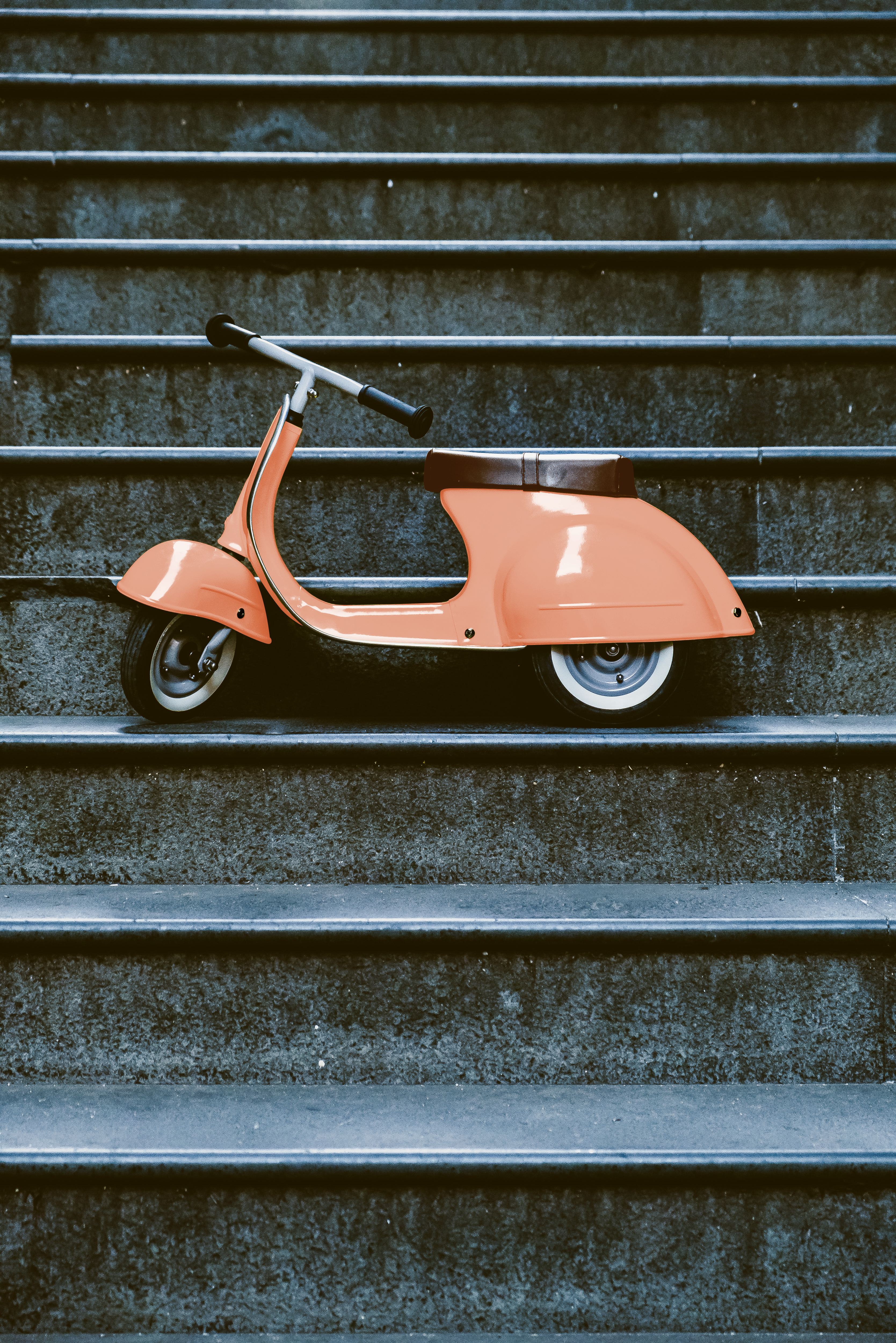 3-rädriges, Rutschfahrzeug aus Metall. In feinster Handarbeit geformt im Design eines klassischen italienischen Rollers.